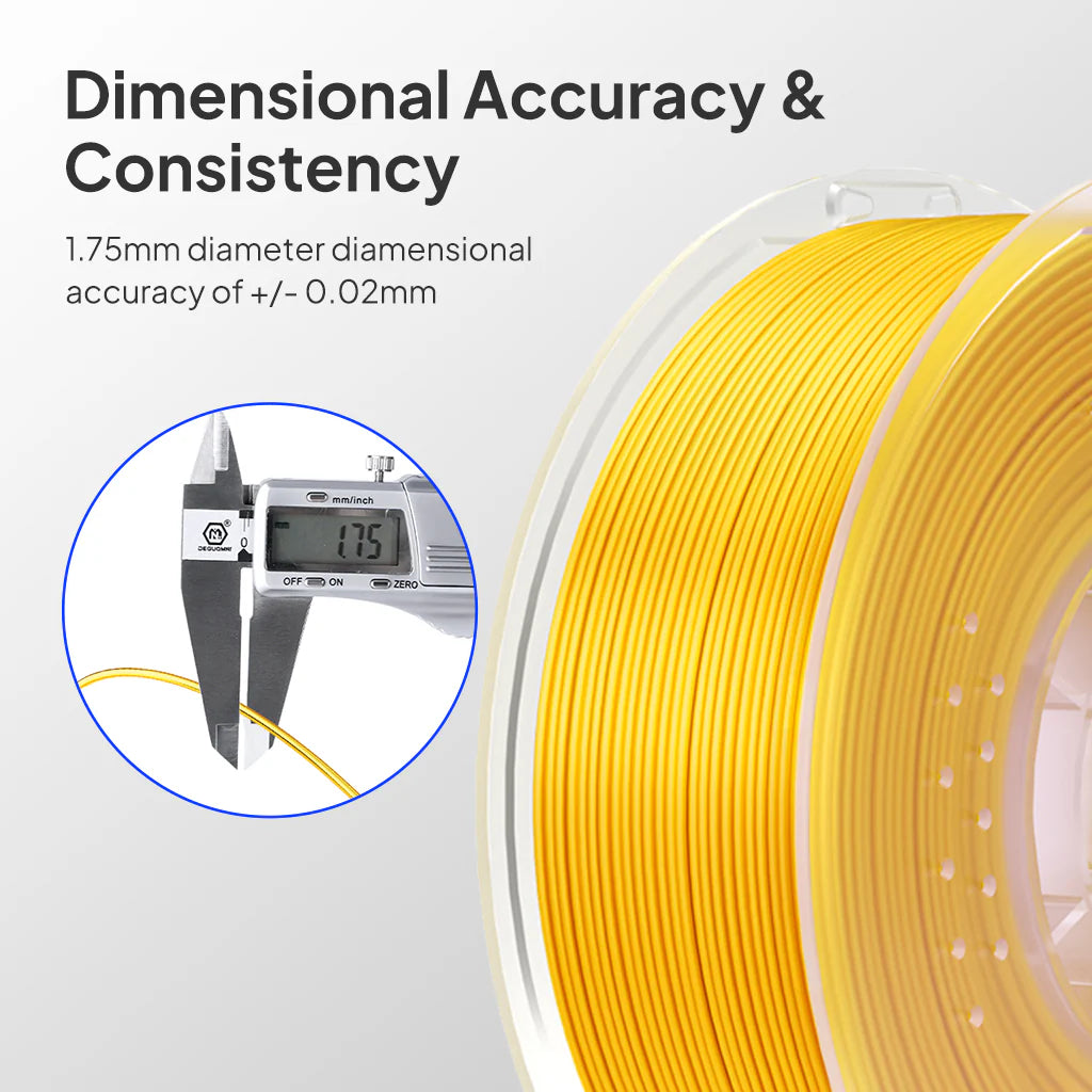 【High-Quality Silk PLA Filaments】Made of high-quality PLA, a commonly used thermoplastic material features lower melting temperature and ease of use, low warp and shrinkage, odorless during printing, and provides a glossy surface finish.